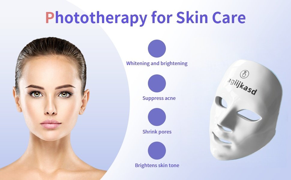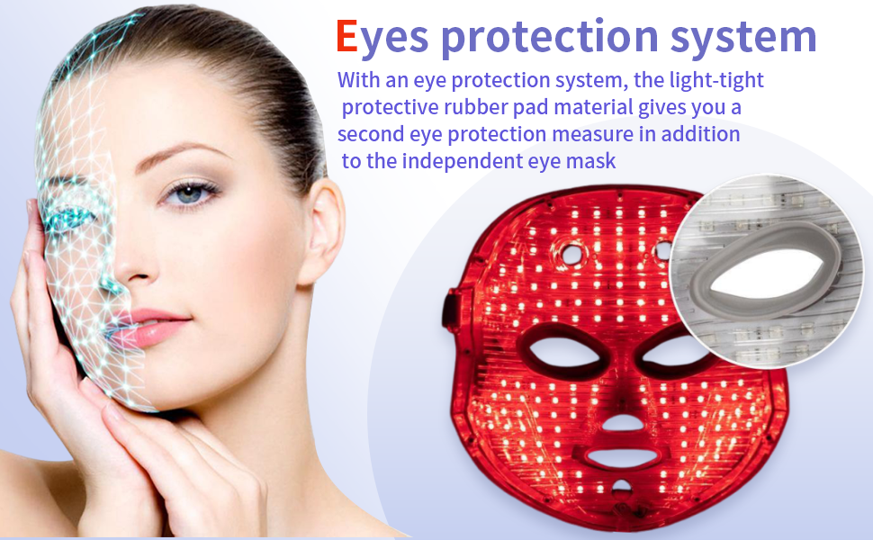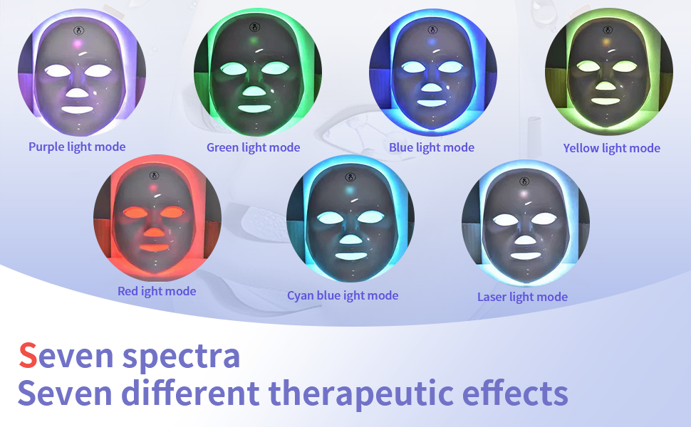 【7 +1 Colors Light Therapy Mask】Red light: Treatment of full-face wrinkles.and Infrared light: Provide topical heating for the purpose of elevating tissue temperature, arthritis and muscle spasm;relieving stitiness, promoting the relaxation of muscle tissue, and to temporarily increase local blood circulationMixed light: Treatment ofmild to moderate inflammatory acne. Blue light: Treatment of mild to moderate inflammatory acne